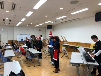 クリスマスソング合唱や、ヘルマンハープ演奏、アスリート発表会、ゲーム、理事長の手品披露、ビンゴゲームでプレゼント交換など、楽しい時間を過ごしました。